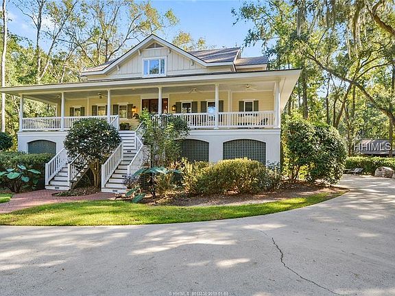 Horse friendly property backs up to Rose Hill's 10 miles of riding trails. A big front sitting porch overlooking 2.5 acres of nature... Dining room, sun lit great room with huge stone fireplace & cathedral ceiling, large master suite, sun lit home office, eat in kitchen with granite counter tops, laundry room, & pantry are on 2nd floor. An antique heart pine staircase with balcony leads to the third floor with 2 more bedrooms, bath and play room which could be a 4th bedroom. First floor sound proof man cave, full bath, huge garages, a 2 stall barn with hayloft, tack room and paddock. 2016 30 year roof.. 2 zone AC under 4 yrs old. C Flood Zone