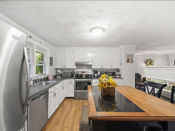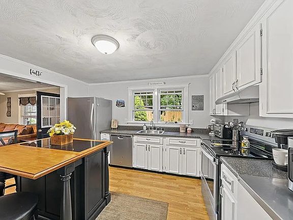 Prepare to be absolutely dazzled by this beautifully maintained ranch-style home, ideally located on a quiet and convenient side street on the desirable East side of Brockton. This thoughtfully updated property offers both charm and functionality, making it the perfect choice for first-time buyers, downsizers, or anyone seeking comfortable one-level living with style. Step inside and be welcomed into a versatile space currently used as a family dining room. With its inviting layout and natural light, this area could just as easily function as a cozy sitting room, home office, or casual family room, depending on your lifestyle needs. From here, the open-concept floor plan flows effortlessly into the heart of the home an updated, eat-in kitchen featuring crisp white cabinetry, stainless steel appliances, generous counter space, and a layout that encourages both everyday living and entertaining. Adjacent to the kitchen is a spacious and sun-filled living room that provides direct access to the attached garage and opens out to your private backyard retreat. Step through the sliding doors to enjoy a fully fenced-in yard, complete with a deck perfect for summer cookouts, a charming storage shed, and ample green space for play or gardening.The home offers three generously sized bedrooms, each with ample closet space enhanced by custom organizing systems to keep everything tidy and accessible. The remodeled full bathroom is equally impressive, featuring a sleek vanity with a granite countertop, updated fixtures, and elegant wainscoting detail for a classic finish.Additional features include updated systems, newer flooring, and a layout that maximizes comfort and convenience. Located minutes from schools, shopping, and major routes, this move-in-ready gem truly combines suburban tranquility with urban accessibility. Don't miss your chance to make this East Brockton beauty your new home!