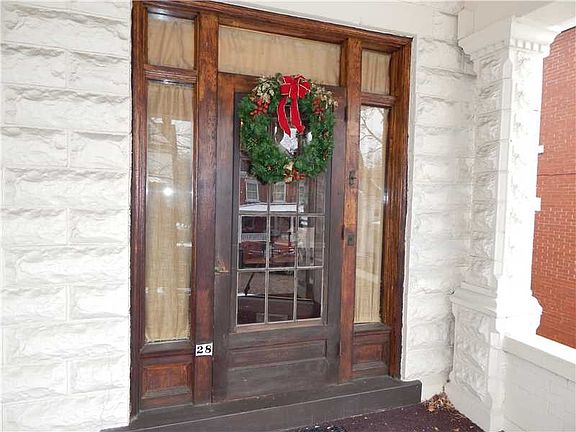 Classic beauty! Fabulous awning covered front porch to enjoy. Gorgeous woodwork, hardwood floors & pocket doors. High ceilings, back staircase, wonderful open Foyer, transom windows, beautiful wood shutters, built-ins, equipped Kitchen. Nice spacious updated Bath. Walk-up attic potential Third Floor. Great fenced level yard with concrete picnic area. Rear porch potential for expanded Kitchen. SOLD AS IS.