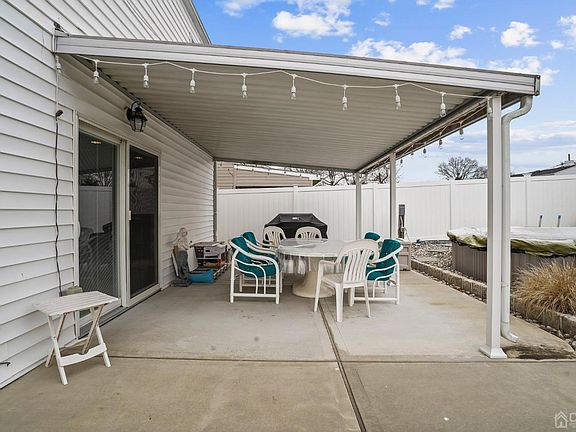 Welcome to this meticulously maintained split-level home, offering a harmonious blend of comfort and style across its spacious layout. Featuring 3 bedrooms and 2 full baths, this residence promises a lifestyle of ease and tranquility. As you step inside, the warmth of hardwood floors greets you, seamlessly flowing throughout the home. The kitchen is a delightful space for any culinary enthusiast, equipped with 42 white cabinetry, Formica counters, and a full appliance package. A skylight and tile flooring enhance the area, bringing in natural light and easy maintenance. The dining area is a true centerpiece, boasting a dramatic vaulted ceiling, tiled floor, and a charming bow bay window that adds a touch of elegance and an abundance of natural light. Step down to the lower level to discover a cozy family room, the perfect space for relaxing or entertaining, which leads directly to a covered porch patio. This outdoor living space is ideal for enjoying the outdoors, rain or shine. The highlight of the backyard is an above-ground pool, uniquely half-sunken into the ground, offering the perfect retreat during warm summer days. Surrounded by a patio walkway and complemented by an outdoor storage shed, this area is both functional and inviting. Privacy is paramount, ensured by full vinyl fencing that surrounds the property, creating a secluded haven for you and your loved ones. The bedrooms are generously sized, providing comfortable and personal spaces for everyone in the household. An additional outdoor storage room offers ample space for tools, equipment, or seasonal items, ensuring your home remains clutter-free. This property is more than just a house; it's a home designed for living well, offering privacy, comfort, and ample outdoor space to enjoy. Don't miss the opportunity to make it yours.