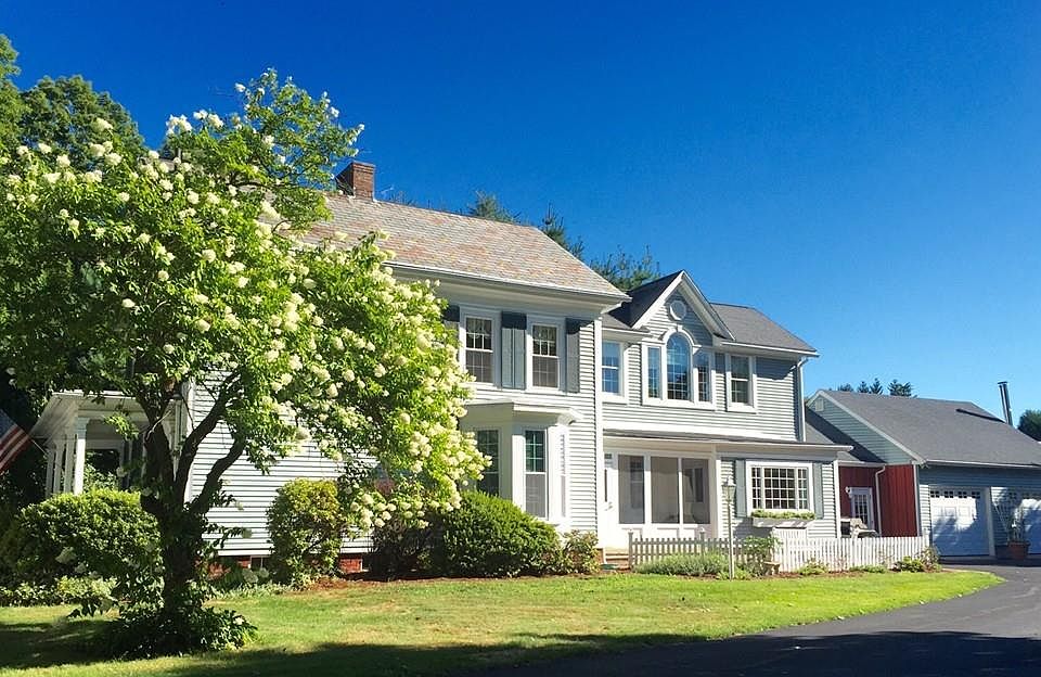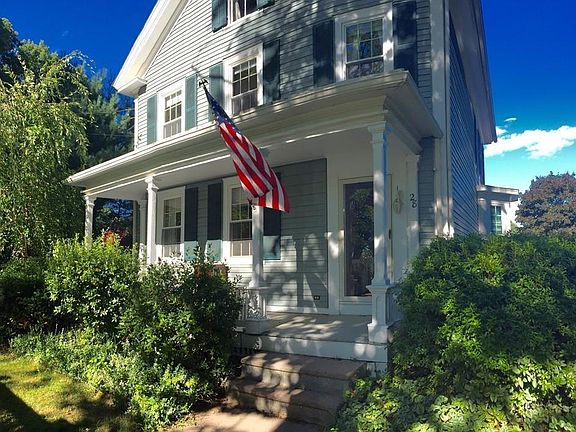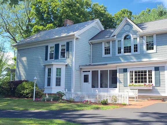 Location! Location! Location! Nestled on a private 1.32 acre lot with 3 stall barn is this downtown gem. Originally built in 1884, this striking Farmhouse has been beautifully remodeled to reflect the desires of today with keeping the charm of yesteryear. Boasting a flexible floor plan with wood floors throughout, amenities include custom built-ins,crown moldings, walk in closets,cherry kitchen with granite & center island, central AC, brick patio and more. Large windows provide a plethora of light throughout the day. The park like setting is perfect for out door entertaining and a gardeners delight. Oversized 2 car garage and insulated workshop a plus. A short stroll to town center and the bike path - minutes to Amherst, Northampton and I-91. A rare find in todays market - Meticulous! Matchless! Memorable!