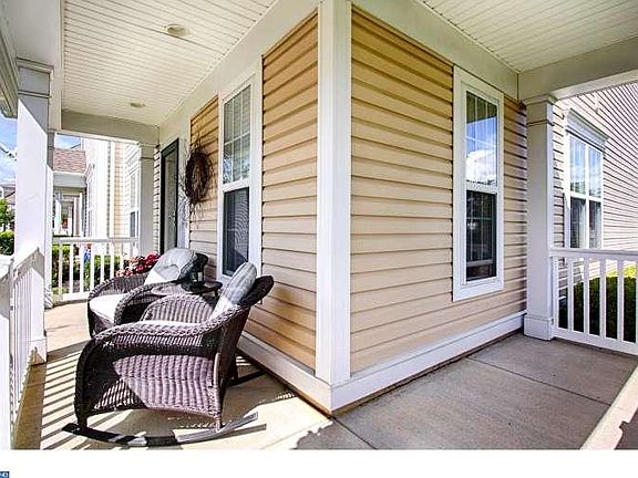 Prestigious Centennial Mill Premier Active Adult 55+ Community. Immaculately maintained 3 bedroom, 2.5 bath End Model Woodbury Town Home. Enjoy your morning coffee or cocktails on the front porch. Gleaming hardwood floors thru-out the main living area. Totally upgraded kitchen with top of the line stainless steel appliance package, granite counter tops, tile back splash, upgraded 42" cabinets and private patio area. Custom window treatments thru-out. Living room has a cathedral ceiling and custom built wall unit, crown molding and wainscoting accent the foyer, living and dining rooms. The master bedroom features a tray ceiling, upgraded master bath and spacious walk in closet. The upper level has two additional bedrooms and a full bath which is great for overnight guests. Spacious loft area ideal for a home office or den. Security and water sprinkler systems. HOA fees include state of the art clubhouse and fitness center with indoor/outdoor pools, spa, sauna, locker/dressing rooms, fully equipped exercise/gym and aerobics room. Full time property manager on premises along with lifestyle director. All exterior maintenance including roofs, siding, snow removal, lawn care and sprinkler system plus clubhouse and fitness center included in monthly fees.