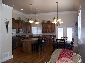 Gorgeous home featuring an open living area with 12-foot ceilings, crown molding, gas fireplace, large windows, stainless appliances, tile counter tops, and hardwood flooring in the kitchen and dining area. There are 3 bedrooms on the main level, included a spacious master with a jetted tub, separate tiled shower, and walk-in closet. Main-level also includes a 2nd full bath, laundry room, and built-in lockers just inside the garage entry. The full basement is beautifully finished with a big family room, and 3 bedrooms which are all large with walk-in closets. A 3rd bath has been sheetrocked and rough-plumbed for a shower. Also included.....2 gas water heaters, central air, and a 3-car garage.
