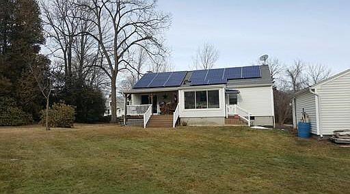 Are you a 1st time home buyer? Or possibly down sizing? Here it is! No need to rent OR purchase a condo when you can own this well maintained and cared for 2 bedroom ranch home with a detached 2 car garage. Hardwood and vinyl flooring throughout. Archways..Living room with wood burning fireplace. Large bedrooms.Dining area leading to a covered porch. Plus a 3 season room. Walk-up attic for future expansion. Located on a nice lot close to the center of town and offering town water and sewer so no worries about a Title V.Beautiful stone walls and paved driveway. Newer windows. Owned Solar panels. (seller hasn't had an electric bill in over 8 months) APO. Call today before it is SOLD!!