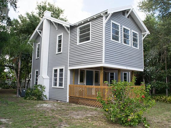 Two homes for the price of one! From the moment you enter, you feel a sense of warmth and welcome. Upon arrival, you see the main house, adorned with a metal roof and surrounded by lush and beautiful landscaping. Imagine yourself sitting on the front porch or taking a stroll to the end of the street where there are magnificent views of the Indian River. Enter through the original,solid-wood front door with antique door knocker and antique leaded windows on either side. Once inside, set your eyes on the re-finished Merritt Island pine wood floors and the cast iron stove with new insert. To your right, is a spacious and inviting formal dining room with decorative ceiling. The dining room is open to the completely renovated kitchen with all new appliances,farm sink, grani