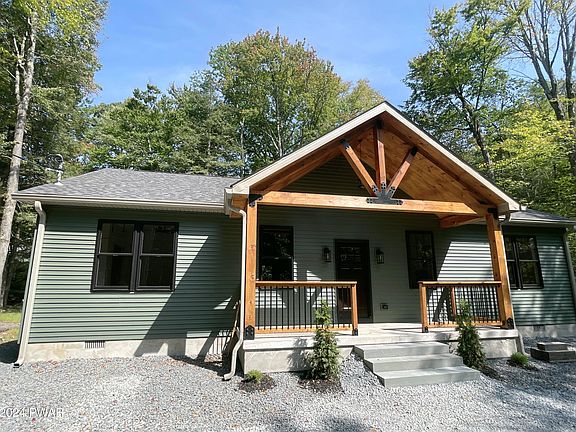 Newly constructed, custom built, ranch home located in amenity filled Wallenpaupack Lake Estates is ready for you to move in. Discover the epitome of modern living in this meticulously built home, located in a quiet setting, boasting 3 bedrooms, 2 full baths including a master suite, central AC, granite counters, propane fireplace, wide plank vinyl flooring, tongue and groove high wood ceilings, tankless water heater, and a spacious open floor plan create a sense of luxury one floor living throughout. Step outside to enjoy the large partially screened covered back deck offering a tranquil view of the wooded lot. Embrace true top-quality construction and contemporary design elements in this stunning property, situated in a desirable community known for its amenities and natural beauty. Dishwasher installed, builder to provide $1,500 credit towards refrigerator and stove.