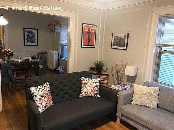 May 15th start (June 1 is possibility), 12 month lease - 3 spacious bedrooms (one with two closets), 1 full bath, living, dining and kitchen, 1200 sq feet - 2nd floor of triple decker - 1 block from Bellevue station on commuter rail and several bus lines, can walk or bus into West Rox or Roslindale Village - Newly updated bathroom - Washer and dryer in laundry room in unit - High-efficiency gas heating system and on-demand water (so no huge heating oil bills or cold showers) - Private front and back porches, shared back yard (with raised beds filled with organic soil for gardening) - One driveway parking spot and plenty of street parking - Lovely light, hardwood floors, original crown molding and trim, built-in hutch in formal dining room - Storage unit in dry basement