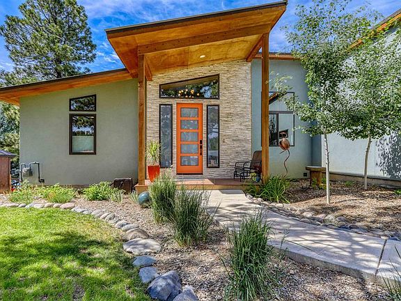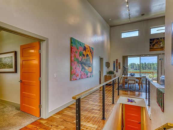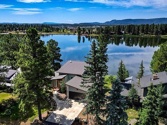 This spectacular modern lakefront home is set on Lake Pagosa and won’t disappoint even the most discriminating buyer. Masterfully designed and impeccably built, the home has 1,750 sq ft of finished living space on the main floor PLUS an additional 990 sq ft of heated, unfinished square footage on the lower walk-out basement to total 2,740 heated sq ft. As you enter the front door on the main, you’ll be greeted with a wall of glass including 8 ft sliding glass doors overlooking the lake and trees beyond. The open floor plan is light, bright and perfect for entertaining. The great room has a corner dry-stacked stone gas fireplace with custom wood mantle, beautiful acacia wood flooring, gourmet kitchen with large hickory island and accent shelving, nice cabinet space, stainless steel appliances, pantry, and contemporary LED lighting throughout. The master suite is on the main floor with great lake views, custom tiled shower, double vanities, and large walk-in closet. There are two other guest bedrooms on the main and full bath with beautiful custom tile work. The laundry room, also on the main, has lots of storage, a sink and leads to the oversized 2-car garage with 8-foot tall garage door, EV charger or welder outlet. Being only 25 feet from the lake, the large Trex back deck overlooks the lake and offers approx 330 sq ft of outdoor living space for evening sunsets, viewing wildlife on the lake, and your own private dock. The property is beautifully landscaped with habitat (native and pollinator-friendly plants) landscaping on drip lines from city water, a sprinkler system in front and back fed by lake water for lawn watering and a long, concrete driveway. The 990 sq ft downstairs would be great for a family or game room, a fourth bedroom or art studio. There are large sliding glass doors that lead to a covered back patio that is perfect for storing lake toys such as canoes, paddle boards or kayaks. This impeccable lakefront property is a rare offering and should not be missed!