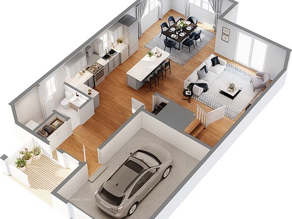 The 3-BR Meadow Floor Plan is a 3-bedroom townhome with 2 full bathrooms and 1-2 half baths. Entrance through the front door, or through the garage, brings you into an entry foyer with a large coat closet on the main floor. The Kitchen, Living Room and Dining Room flow seamlessly into one another allowing an abundance of natural light to fill up the entire space. Sliding glass doors lead to a private deck. The Second Floor includes the Master Bedroom, with large walk-in closets and the master bath; Two additional bedrooms; a full hallway bathroom; and the washer & dryer. Meadow units in buildings 6 & 7 will include a fully finished lower level which walks out to a private patio. An additional powder room and storage closet can be added to the lower level.