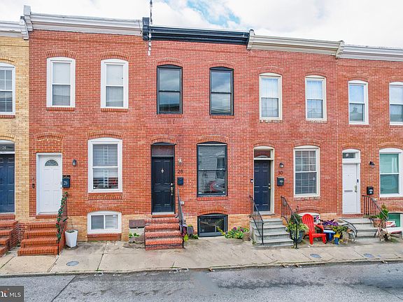 Welcome to 28 N Curly Street, a beautifully renovated 1920s home offering 3 bedrooms and 2 baths across 1404 sq ft. With hardwood floors, stainless steel appliances, and a fully finished basement, this residence seamlessly combines historic charm with modern comfort. The property boasts excellent condition with significant renovations in 2013. Enjoy designated outdoor space for parking or create your own outdoor retreat. Located on a quiet one-way street, just steps from Patterson Park, and within walking distance to downtown amenities. No HOA fees, SMART features throughout, a jetted bathtub, exposed brick, and a bonus flex room add to the appeal. Don't miss the chance to call this Baltimore gem home!