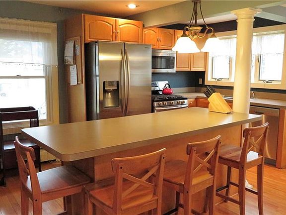 DOWNTOWN NIANTIC - Shows pristine! Filled with warmth, charm & tons of space! 4BR/3BA Colonial with open floor plan. Hardwood floors through out. KT with pantry and eat-at center isle. Two sided brick gas fireplace can be seen from both KT and LR. Huge DR or first floor FR. Heated Sun Porch. 2 bdrms and 2 baths on second floor plus FR leading to upper deck. Plus property has a third floor with 2 large bdrms! Full walk-out basement. Level lot with patio and 1 car detached garage. Walk to Niantic's quaint downtown w/ its beaches, boardwalk, marinas, shops, restaurants, and movie theater!