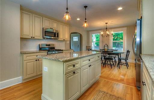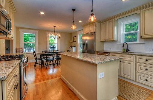 - Kitchen Description: Center Island, Granite Corian etc Countertops, Eat-In Kitchen