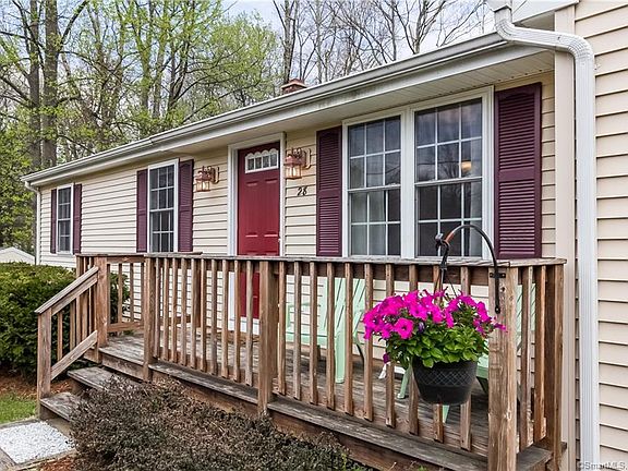 28 Namonee Trail is a lovely ranch home within walking distance of Lake Pocotopaug, truly a place to call home. Previous owners added an addition of the family room, foyer, and a bathroom, also finishing the basement. Current owners painted the entire interior and gutted and remodeled the main bathroom. The water softening system is recently replaced, and there is new carpet in two of the bedrooms. Recently, the current owners tiled the basement and bought all new kitchen appliances. In the last few weeks alone, the landscaping has been updated, rooms have been painted, and interior doors replaced. There are hardwood floors throughout, underneath the carpet in the bedrooms as well. The premium furnace service plan is transferrable to new owners. This house is perfect for entertaining with plentiful counter space and a large enough dining room to fit your entire extended family! The large breakfast bar is a great place to set out appetizers or a buffet. The spacious living room and finished basement allow plenty of space to gather. This home is part of a great neighborhood, with awesome neighbors and a really beautiful location. East Hampton is conveniently located next to Route 2 and is a short distance to Hartford. It is known for its rich history, environmental assets, and small town charm. One of the best things about East Hampton is the rural-suburban character. Lake Pocotopaug is one of Connecticut's largest inland water bodies; this home is part of the Princess Pocotopaug Association, which provides you with lake rights and gives you access to two private beaches and boat launches right in the neighborhood! State parks and forests surround this home on the northern, southern, and western borders, along with the famous Airline Trail and Comstock Covered Bridge across the Salmon River.