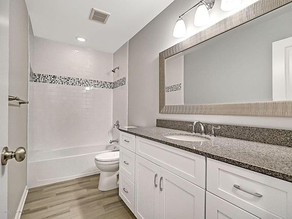 Another CORELAND Creation! Professionally Renovated to Perfection! Situated on a Quiet Tree Lined Street In Beachwood's Most Sought After Neighborhood! This Freshly Landscaped, Open Concept Ranch features a Gorgeous EIK with Center Island/Breakfast Bar, Pendant Lighting, Soft Close Shaker Cabinetry, Granite tops, Subway Tiled Backsplash & Whirlpool SS Appliance Pkg. Formal LR w/Ceiling Fan, & Dining Area w/Sliders leading to Patio in a Fully Fenced yard! Hand Scraped WIDE PLANK HW Flooring, Raised Paneled Doors, & Custom Molding Package THRU-OUT! Pocket Door to Tiled Laundry Rm. Ceiling Fans in all 3 Spacious Bdrms. Brand New Tankless HWH & Central Air. Direct Entry Garage w/automatic opener & Brand New Driveway. Minutes to GSP, Rt. 9, Downtown Toms River & Jersey Shore Beaches.
