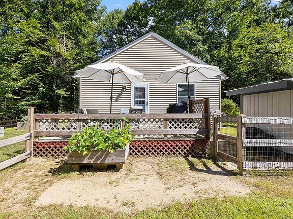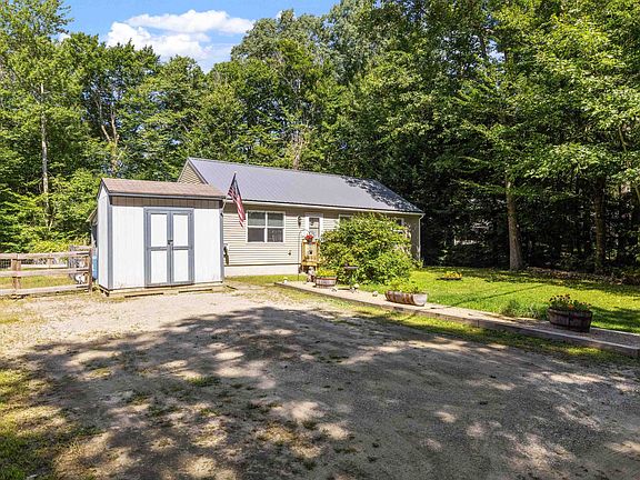 Well maintained ranch home on a generous landscaped lot in sought after Locke Lake Colony. Featuring 2 bedrooms, den, eat-in kitchen, full bath, living room, pellet stove and partially finished room in basement. Updates include a new septic system Oct 2016, new metal roof and new vinyl siding in Aug 2021. The lot is bordered with fencing & stonewalls where you'll find raised garden beds ready for planting, two sheds for additional storage or hobbies, and a cozy fire pit for those cool evenings spent under the stars. The large deck offers plenty of room for entertaining, barbecuing, or simply relaxing while taking in the serene surroundings and listening to the beautiful calls of the Loons from the nearby lake. Rights to Halfmoon Lake & Locke Lake, w/ access to 2 inground pools, golf course, baseball field & tennis/pickleball courts makes this home a great place to entertain your guests, vacation home/Airbnb. Just 30 min to Gunstock for skiing; 15 min to Lake Winnipesaukee/ Alton Bay for dining, entertainment, swimming & boating. Conveniently located within a short drive to Concord, Tilton, Laconia and Rochester for all of your major shopping needs.