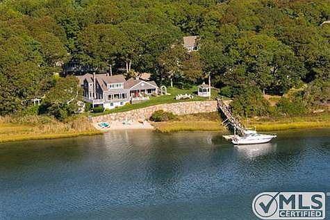 Beautifully situated on picturesque Waquoit Bay, this modern waterfront beach house with remarkable water views and deep-water dock is an ideal home for summer relaxation and peaceful enjoyment on one of Cape Cod's pristine waterways. You'll immediately feel the comfort and care of this well-maintained property as you enter the light and airy great room with awesome views. The adjoining dining room and kitchen with expected amenities are ideal for entertaining. Complimenting this level is a master bedroom with views and access to an outdoor stone patio with a natural gas fire pit. There is an additional deck off of the great room. Upstairs are three bedrooms and an entertainment room with access to an outside deck. The lower lever has another bedroom and full laundry room. Outside there is a separate seating area and screened gazebo. And Brokered And Advertised By: Robert Paul Properties, Inc. Listing Agent: Debra M Caney