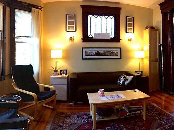 Walk to Yale. Spacious and sunny (1,200 sq. ft) 2bd first-floor apartment in quiet East Rock street. Good sized living and dining rooms, solid appliances, kitchen refreshed. Large windows, wood floors, built-in cabinet and other Victorian features. Laundry in basement, large private back yard, quiet and safe neighborhood, walking distance to Yale, a block or two from Yale and City buses and lots of restaurants/cafes (once we're all cleared!). Easy walk to East Rock Park and Mactivity Gym. Plenty of basement storage. Some furniture (bookcases, curtains) optional for free inclusion too. Also, considerate, quiet tenants on other floors, and responsive landlords. Owner pays for water. Tenant pays for all other utilities. Almost new highly efficient furnace installed in December 2019. Replacement windows and insulation throughout.
