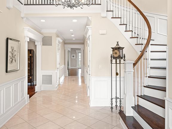 Enjoy the City life while living in the suburbs.This majestic Georgian Colonial is conveniently located in a serene street, only 2 min away from the train, shops and restaurants. A quick 45 min commute to NYC.This 5-bdr, 6.2-bth home features high ceilings, large rooms, and high-end fixtures on 4 levels of optimal, flexible living space. The gourmet kitchen, adjacent to the family room, includes a breakfast area and French doors that open up to a deck overlooking the heated pool. Luxurious MB and MBTH. 4 additional 2nd floor bdr, with a home office,The walk-out LL adds 2,000 + SF with gym, playroom, 2nd LR, full bath and wet bar. 5 custom fireplaces. Elevator option.