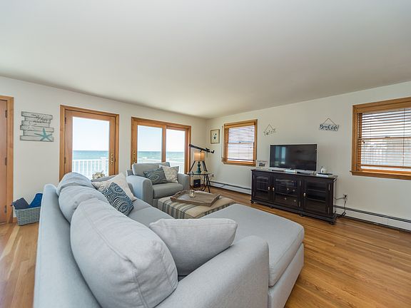 Breathtaking ocean views from almost every room in the house! Dream house in Marshfield's Brant Rock, previously featured on HGTV's Beach Hunters. Marshfield is truly a hidden gem and only an hour from Boston - no Cape traffic! Built for entertaining, this home features a bright and spacious open floor plan with gorgeous 2015 kitchen and oversized breakfast bar, dining area with gas fireplace and gracious living area -- with glass doors leading out to sprawling back deck overlooking the Atlantic Ocean. First floor also features full bathroom, laundry and den/office space. Second floor features magical master bedroom with walk-in closet, second bedroom with TONS of space for guests, and full bathroom. Think you've seen it all? Walk up up to the 3rd floor for a beautiful loft-like space with skylights and ocean views. Solid hardwood floors throughout and incredible closet space, plus extra storage under the house for things like floats and kayaks. Walk or bike to local shops and restaurants on the Esplanade including the famous Haddad's, Fairview Inn, the Jetty and so much more! One house away from direct beach access which is virtually like having your own private beach. Furniture is negotiable.
