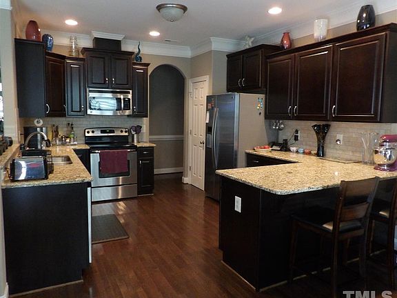 Great open ranch plan with upstairs bonus! Large formal dining room with coffered ceiling, hardwood floors in living areas. Kitchen is open to large family room and has sunny breakfast area. Beautiful granite counter tops in kitchen. Master suite has trey ceiling, bath with dual vanities, shower and separate whirlpool tub and large walk in closet. Third bedroom has sitting area with coffee bar and makes a lovely in law suite. Large bonus leads to huge walk in storage! Fenced yard plus large deck!