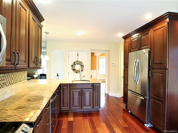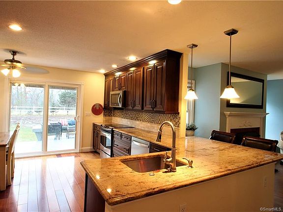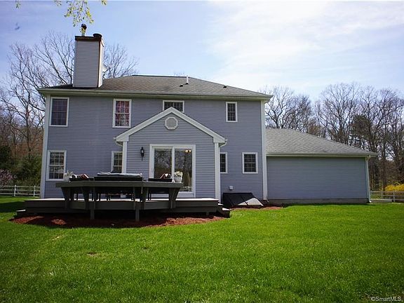 Wonderful opportunity to own this hip roofed colonial situated on a dead-end street community of fine homes! Take a look inside this updated home starting with the recently remodeled eat-in kitchen with stainless steel appliances, granite counter-tops, tiled back-splash, and breakfast bar. First floor also features a large living room with a fireplace and built in entertainment center as well as a dining room complete with decorative pillars and chair rail. First floor bathroom has just finished a remodel. This elegant first floor will impress. The master bedroom features a his/her walk in closets as well as full bath. Almost the entire lower level is finished with a separate office space, a large playroom area, and a dedicated gym space. The entire level yard is completely fenced and features a Rainbow Systems Playscape, Kloter Farms Gazebo With Electricity, 16 Tree Mini Orchard with Apple, Peach, Pear and Apricot Trees,Raspberry And Wild Blackberry Bushes. This open level back yard and wood deck with built in bench seating is perfect for entertaining! This ideal country location allows for an easy to compute to Hartford. SIGNIFICANT PRICE REDUCTION TO SELL NOW!!!