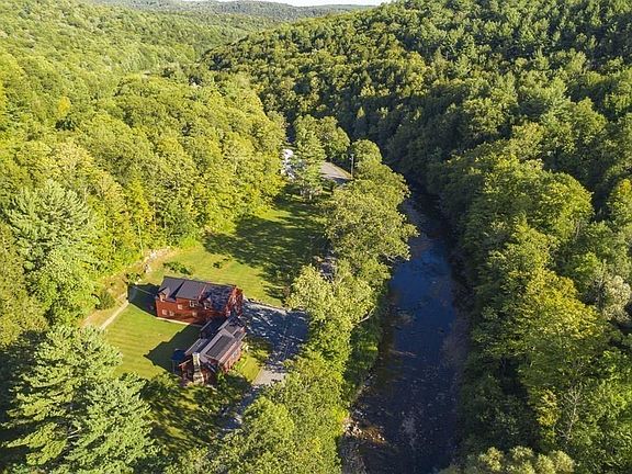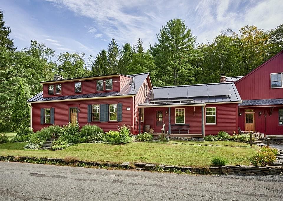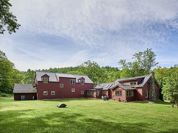 Beautifully restored 1815 cape has a 4 bay garage addition which has a bedroom suite with spacious living room above. Splendid home is located across a quiet street from the Westfield River. Addition could be made into an in-law apartment. Main bedroom suite is light-filled and has plenty of closets. Radiant floor heat in bathroom with a soaking tub & a separate shower. This level has a laundry room. This space connects to the older part of the house through the side entry hall with radiant floor heat plus plenty of room for coats & boots. Eat-in country kitchen has a cathedral ceiling, soapstone counters & sink, pantry & a parlor woodstove. Spacious living room has a stone fireplace for those cool nights & built in bookshelves. Dining room with exposed beams leads to a small study & enclosed porch. Full bath with a claw foot tub completes the downstairs. Upstairs in the older part of the house are two cozy bedrooms, a study & a bath. Solar panels. Amazingly private yet easy access
