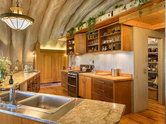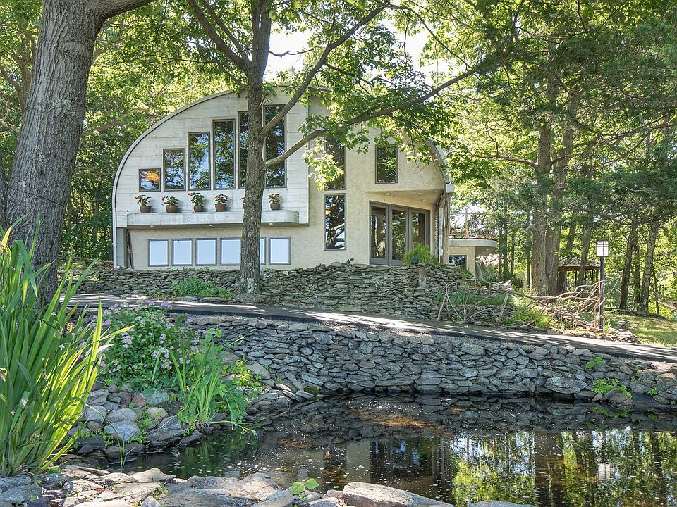 Featuring forever-protected views that reach to the Catskills, this truly-unique homestead offers a peaceful and bucolic setting to get away from it all. Eleven acres, surrounded by woods and stream, abut Camp Ramapo. Sweeping meadow, fruit orchard, vegetable garden, animal shelters complement three innovative arched structures of steel and glass, each artfully and cleverly-appointed with artisanal crafted finishes on every level. The main house features a spacious living room with open kitchen/dining, shaded porch, storage pantry, sleeping loft, and half bath. The lower level features a master suite with walk-in dressing closet and full bathroom, sitting room (which could become a bedroom), office/bedroom, and full bathroom. A guest house with office and studio has sleeping loft and full bath. There is a two-car garage with storage space. Stone paths connecting the buildings are surrounded by stone terracing and gardens. Add-in state of the art systems of geothermal heating and cooling, heat recovery systems, super-efficient polyurethane insulation, and built-in vacuum system. This unique compound is moments to Rhinebeck town center conveniences and less than two hours from NYC via Amtrak train.
