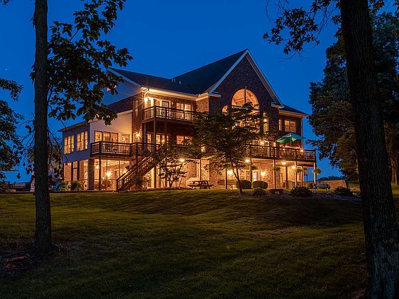 Seller is relocating and is motivated to sell! "Crane Cove"" is a one of a kind Timber Frame home in Daviess County, site built by owner who spared no expense and attended to every detail. Home is situated on 1.7 lake front acres and was positioned to maximize all season views of woods, water, sunrise, sunset and bald eagles fishing the lake. This is a home of openness and light, a marvelous combination of relaxed comfort and luxury with large open areas and cozy nooks. "Crane Cove" has 4 bedrooms, 4 baths, 3 fireplaces, great room, dining room, exercise room, custom kitchen, laundry room, pantry, Irish Pub bar, bar kitchen, sunroom, library, screened porch, catwalk with loft areas, 2 decks, large front porch, patio with firepit and 300' circular drive. The home is country living in a beautiful residential community, protected by convenants, with all city utilities. A wonderful gathering place for family and friends.