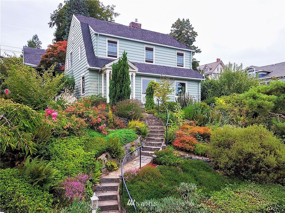 Dutch Colonial home perched high above the street in a private setting located in the desirable Prospect Hill neighborhood. Inviting lush mature garden with a variety of perennials of year-round blooms. This distinguished 3 bed/1.5 bath home boasts original charm with modern features. Updated gourmet kitchen with soapstone countertops, farm-style porcelain sink & pullout pantry, original mouldings, coved ceilings and oak built-ins. Spacious formal dining/living room with gas fireplace and gleaming oak hardwood floors throughout the main & upper level. Nice views from the living room and the upper bedrooms of the North Cascades on clear days. The lower level offers a family room, utility room and loads of storage to grow into. 2021-08-24