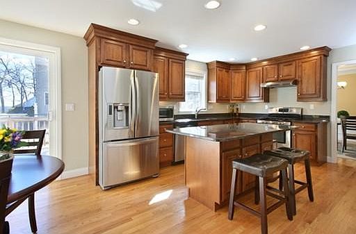 - Kit Dscrp: Pantry, Dining Area, Flooring - Hardwood, Countertops - Stone/Granite/Solid, Kitchen Island, Stainless Steel Appliances, Recessed Lighting, Slider, Exterior Access