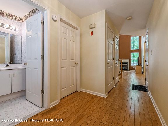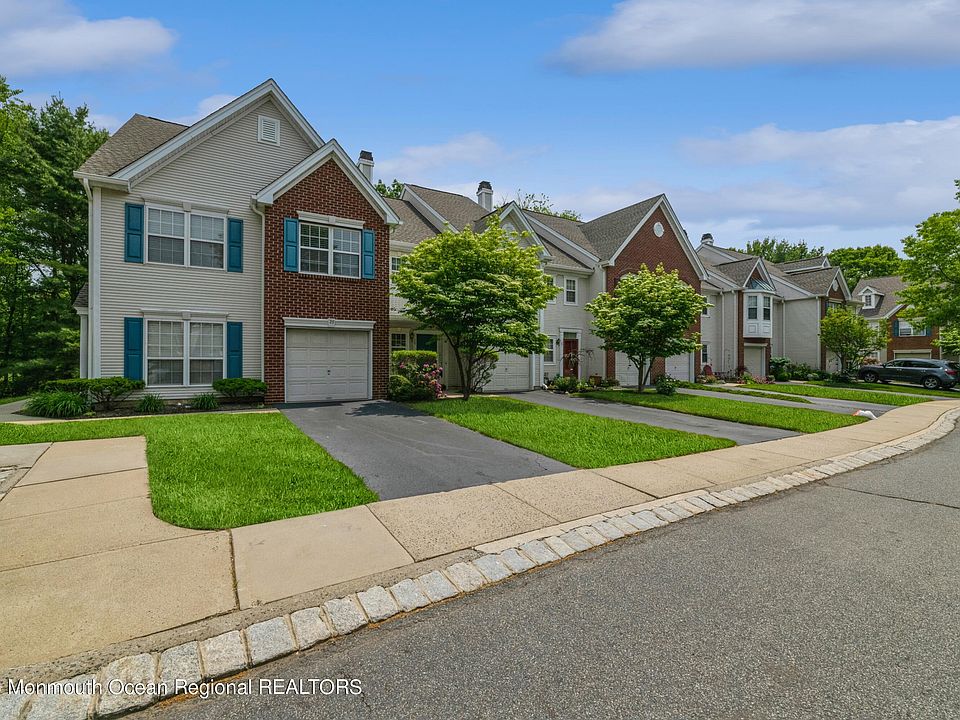 Premium Location in ''The Orchards at Holmdel.'' This Townhome features 2BR/2.5BA with Large Deck backing to Woods for Privacy. 2-Story Living Room with Wood Burning Fireplace & plenty of windows provides natural lighting. Hardwood Flooring throughout 1st & 2nd Floors. Eat-In Kitchen has new Sliding Door to Large Back Deck. Generous size Bedrooms with WI-Closet in Primary BR & Double Closets in 2nd BR. The Master BR has a Balcony, Full Master Bath with Soaking Tub, Stall Shower & Double Vanity. 2nd Floor Laundry. 1-Car Direct Entry Garage. Community offers Playground, Tennis & Basketball Courts. Excellent commuter location with Major Highways nearby.