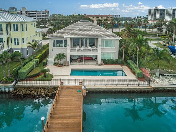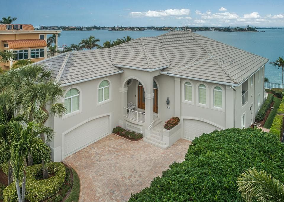A stunning 4BR/3.5BA estate sized waterfront home situated on the sparkling waters of Boca Ciega Bay, designed and built in 1996 by Carmine Pici & Sons. This magnificent residence is block construction, has wall to wall Pella windows with hurricane shutters, an elevator, a 4 car garage, volume ceilings and fabulous water views from multiple vantage points. Abundant natural light fills most every room. The main living area located on the second level offers panoramic water views and the perfect layout for entertaining complete with an inviting balcony, a large Great Room, beautiful Dining room & an attractive Chef's Kitchen with abundant cabinets & counter space. A divine Master Suite has gorgeous views with access to the balcony and the master bath offers a separate shower, soaking tub, dual vanities, dressing table, bidet & 2 oversized walk-in closets. The main living level has 2 additional Guest rooms, a Hall Bath, a Powder Bath and a large Laundry Room with great storage & a laundry sink. The ground level has lots of additional space and opens to a lovely paver Lanai that surrounds a generous sized pool overlooking deep boating water. Newer dock and the seawall has a newer concrete cap on one side and Riprap on the other. A true boating & fishing paradise exists right in your own back yard! An easy stroll or quick bike ride to the white sandy beaches of Treasure Island, one of Florida's finest beaches, and just a quick 15 minute drive to vibrant downtown St. Pete!