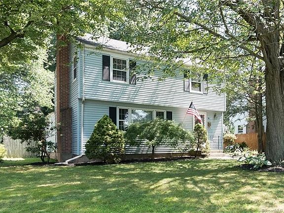 Fabulous Wethersfield Colonial set on a level .25 acre neighborhood lot. This inviting 1, 580 square foot home has three bedrooms, one full and one half bath. The kitchen offers stainless steel appliances and there are refinished hardwood floors throughout. Spacious Formal living room offers a wood burning fireplace with custom mantle and gorgeous exposed brick. Dining room leads to additional family room space that has access to the rear deck. Second level Master has generous closet space and overlooks the backyard. Two additional bedrooms complete the second level along with a remodeled full bathroom. Heat and Hot water are fueled by natural gas, window units for cooling, two car detached garage and public utilities! (Hardwood floors throughout underneath any remaining carpeting) Full basement for additional storage. Don't miss out, schedule your showing today!