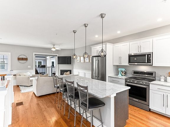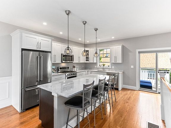 Terrific opportunity to own this beautiful townhouse in a coveted community. This thoughtfully designed unit features a direct access garage, open concept kitchen, living, dining area on the main level and 2 bedrooms and 2 full baths (en suites) on the top floor. Lovely blend of modern and traditional finishes including a two-tone kitchen with a generous island, Carrera marble counter tops, gas fireplace, wainscoting, front and rear decks plus a private yard! Terrific storage and a laundry room on the ground floor add nicely to this townhouse. All in a terrific location with easy access to I 93 and a few blocks from a Red Line T station.
