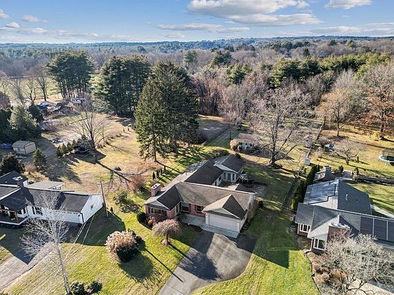 Practicality meets comfort in this single-level residence, surrounded by a spacious yard that feels like your own private park. You'll be delighted with the updates, the natural light and wood floors this home has to offer. The galley style Kitchen with granite countertops opens to the living room which hosts a wet bar, wine fridge and wood burning fireplace with stone hearth. The master suite in the rear of the home offers a comfortable space with a large ensuite bathroom with shower stall and jetted tub and a walk in closet with custom cabinets & shelving. The solarium off the primary creates the opportunity for an office, den or 4 season style room with a wet bar! A junior suite bedroom with a spacious ensuite bathroom and double closets and a third bedroom finish off the main living level. The private outdoor oasis is 1+ acres with manicured landscaping, irrigation system and mature trees is perfect for entertaining & gardening. You'll have peace of mind with the generator too!