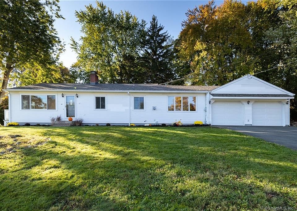 Well maintained 3 bedroom ranch in desirable Wallingford neighborhood close to Farms Country Club and golf course. Enter through the front door into the spacious living room/dinging room area with wood burning stove and fireplace. Perfect to get cozy this winter! French style doors lead out to a cute balcony. The main level also features an eat-in kitchen with tile floor, plenty of cabinet and counter space, and sliders out to a enclosed porch and deck. Primary bedroom has its own bath with stand up shower. Basement has ample storage space! In August 2022, 12 of 15 windows replaced with Anderson Windows. Roof is 3 years old! Newer oil tank as well. Book your showing today.
