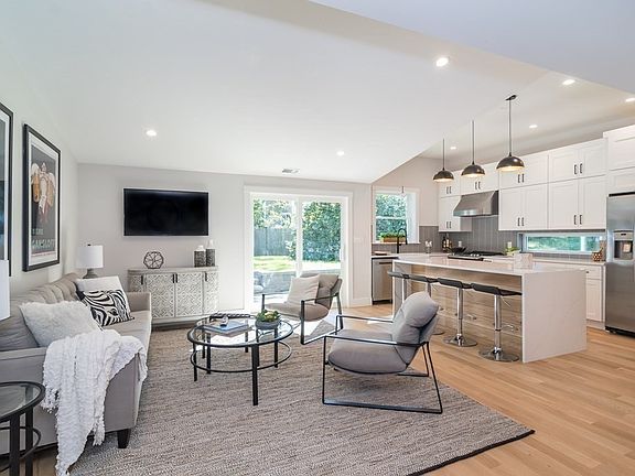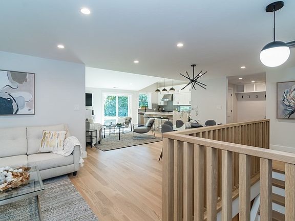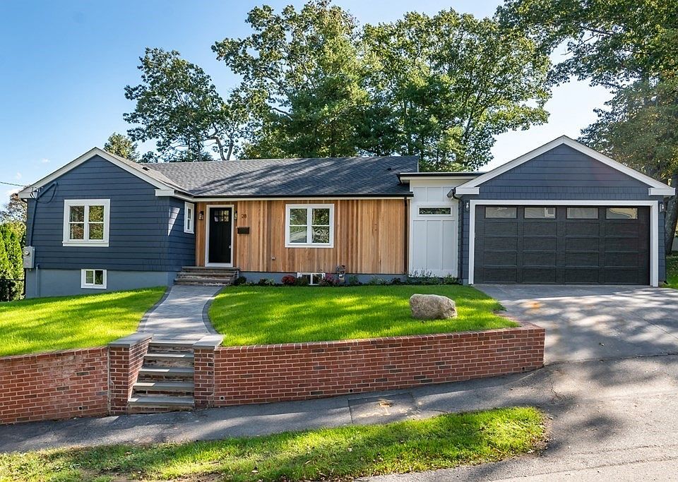 Great opportunity to own a total gut renovation and new construction addition from A1RE, located on dead-end street in a desirable Needham neighborhood. This Nordic European Contemporary house offers 5 bedrooms and 4 bathrooms. The massive 1st-floor features three bedrooms, two full baths and a master suite with cathedral ceilings. Open plan living room, dining room and kitchen with island and quartz countertop. Sloped high ceilings on kitchen and family area, precedes a backyard stone patio, showcasing the new modern structure with the warmth of cedar siding. A heated garage connects directly to the mudroom and powder room. Engineered hardwood floors on the entire floor complement a seamless open concept integration. The finished lower level boasts a walkout to the backyard, full bedroom, full bath, family room, exercise room, and multi/office area. Perfect home for young families, downsizing, empty nesters. Enjoy downtown restaurants, trails and easy access to Boston by car or train.