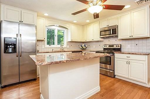 - Kit Dscrp: Flooring - Hardwood, Countertops - Stone/Granite/Solid, Cabinets - Upgraded, Kitchen Island, Stainless Steel Appliances, Recessed Lighting, Remodeled