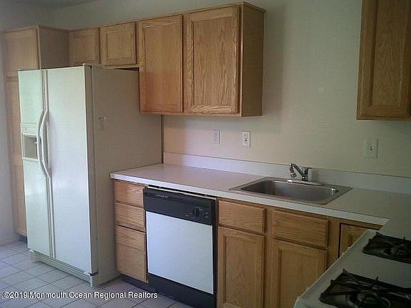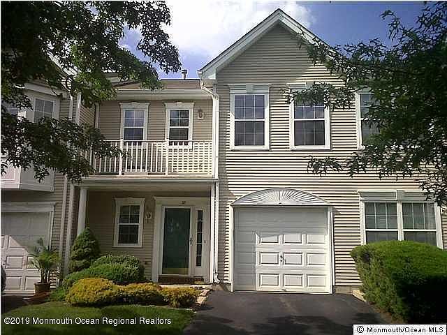This two level townhome Borders Freehold,Colts Neck,& Howell. Close to Rt.9,Rt.18,Rt.33,Rt.195,&GS Parkway! Great 2 Bedroom, 2. 1/1 Bath w/a GARAGE! Open floor plan w/an abundance of closet space thru out! BRIGHT foyer w/a 1/2 bath & further down the hall an entrance from the garage into the home. 2 Story Family room w/plenty of light from the palladium windows. Dining room w/hardwood floors. Eat-in kitchen has sliders to a private wooded backyard. Paver patio & privacy fences on each side. Master bedroom w/a master bath & balcony.Full Hall bath for the 2nd bdrm.Laundry rm on 2nd floor