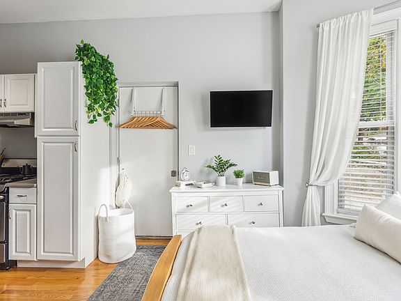 The property is a recently restored first floor studio in East Somerville. It has everything you would need to live comfortably from the moment you move in, including a coffee machine, espresso machine, stainless steel appliances, every kitchen tool a cook could need, linens, a smart TV, and more. (There is a new oven not reflected in the photographs) The apartment is a light and clean space with tall ceilings. Nearly everything in the apartment is new. There is a large, shared backyard, and laundry facilities in the basement of the building. The laundry facilities are included in the rent. There is also a storage unit in the basement of the building designated for the unit capable of accommodating some extra storage needs. Lease term is one year or longer if desired. Lessee pays utilities and communication bills.
