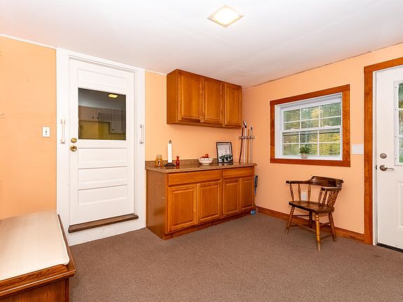 Charming ranch perfectly framed by mature landscaping, stonewalls & boasting 21+ abutting acres for enjoyment. This lovely home is filled with natural light and offers charm, character & classic appointments throughout. Wonderful mudroom with builtins offers versatility & potential, cheery eat-in kitchen w/painted cabinetry & tile floors, lovely hardwood floors throughout most of the home (excepting kitchen & bath), generous living room w/picture window & french door to entry foyer, updated full bath, primary bedroom w/double closets, current office/den includes laundry area & could be guest bedroom. Full basement offers space for work projects & connects to great storage area (under mudroom.) This home has been well maintained & also boast 3 yr old roof. The attached garage is deep w/room for vehicle & stuff. And then there's the land. The expansive deck overlooks fabulous backyard & path to the bonus acreage. Wonderful opportunity for hikes, pet play, nature trails, x country skiing & more. Land is not subdividable. This property offers so much potential and opportunity to add equity & your personal style. Great location in desirable North Hampton. Welcome home!