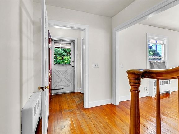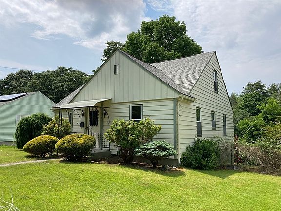 Comfortable 5 room cape style home with 2 additional rooms on second floor- just waiting for finishing! The sunny living room has a picture window, and features a window air conditioner and hardwood floors. Dining room can accommodate a large table and features hardwood floors. Most of the rooms have been recently painted, including the kitchen cabinets. The kitchen countertop and floor are Epoxy. Stove, refrigerator, dishwasher, microwave and disposal to remain. There are two bedrooms and a full bath. All rooms have ceiling fans. The laundry is located on the back porch area. The basement is recently painted, has high ceilings, and features a walk out to the back yard. There are circuit breakers and the boiler is newer (2021 APO). There is a good sized yard and a detached garage The property has seasonal views of the Ware River. Low traffic street. Located close to Grenville Park and downtown Ware.