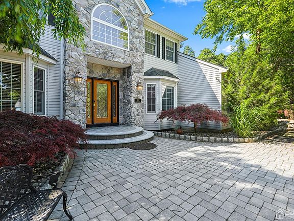 Fantastic North/North West facing Stonefront Home with a Circular Driveway nestled in a private Cul-de-sac with 5 Bedrooms and 3 Full Baths. Home features Exquisite Mahogany and Cherry Wide Plank Wood Floors, Custom Archways, Crown Molding, FIRST FLOOR BEDROOM with a FULL BATH, 2 Story Family Room with a Wood burning Fireplace, Large Eat-in-Kitchen, and a Serene Backyard, with a Heated, Gunite Pool with a Waterfall and a Spa. Spacious Eat-in-Kitchen is open to the Family Room and overlooks the private Backyard. Master Bedroom with Double Tray Ceiling, Walk-in Closet with custom Closet Organizers, and an attached Bath with Jetted Tub. Fenced in Backyard. EXTRA yard space to the side of the lot for more privacy. Great Neighborhood. Desirable Monroe Schools. MUST SEE!