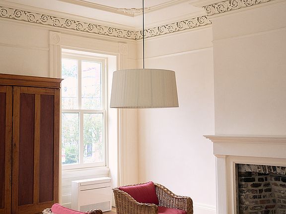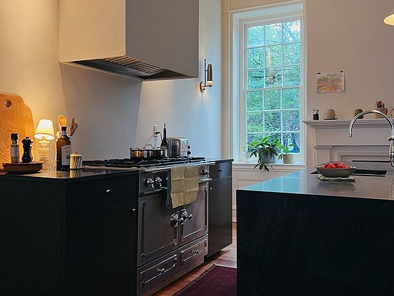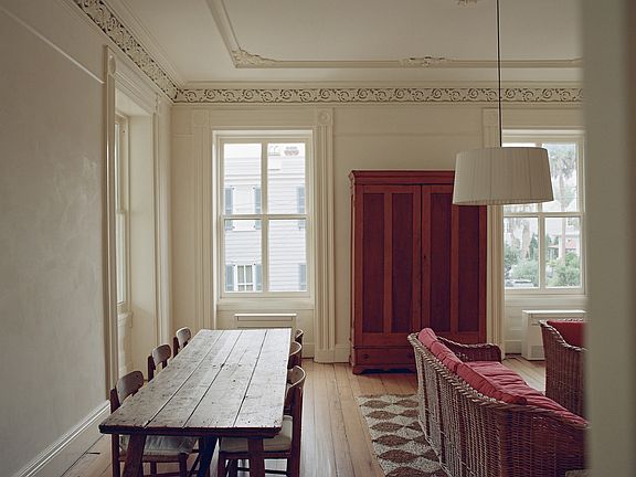 Elegantly furnished second and third floor apartment in a recently restored 1820s Charleston Single House features three bedrooms, two luxurious bathrooms, and a private, gated driveway for two vehicles. Enter through a private entryway and ascend the stairs into the grand residence with original heart pine floors and tall ceilings throughout. The spacious living and dining area is filled with natural light that showcases the beautifully restored plaster medallions and cornices. The top-of-the-line kitchen includes AD 100 Workstead custom cabinetry, a La Cornue CornuFe 110 dual fuel range, and built-in Liebherr refrigerator and freezer drawers along with many other pleasing amenities. The piazza offers ample seating area and an ideal setting for outdoor entertaining. The guest suite provides two bedrooms. One has twin XL beds that can be converted to create an additional sitting room, while the other features a queen bed. Both are located off a shared hallway, which includes built-in bookshelves and a bathroom with a full-size washer and dryer. A stunning Palladian window lights the stairwell, leading to the third floor's primary suite. The primary bedroom includes a king bed and the bathroom has a spacious armoire, tile shower, AD 100 Workstead vanities, and the original clawfoot soaking tub while showcasing the home's architectural elegance. Available Now. (90-day minimum term). Some pets are negotiable with an additional fee. Application Fee $75.00.