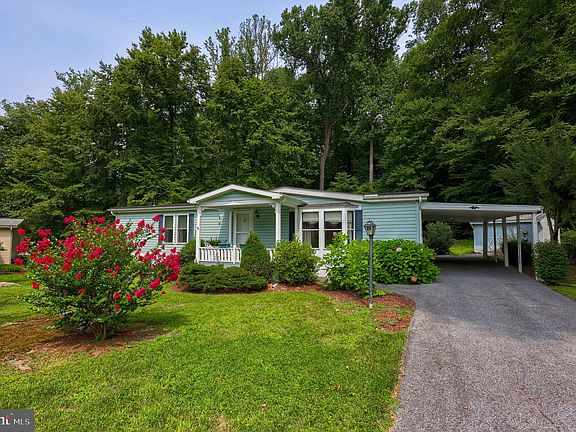 This home is located on a quiet cul-de-sac in the desirable Gretna Springs 55+ Community. With 2 bedrooms, 2 full bathrooms, and over 1,200 sq ft, this home features an open floor from the living room into the kitchen and dining area that has sliding doors onto a deck overlooking the private backyard which backs up to the woods. The primary bedroom has an attached full bathroom, there is 1 additional bedroom and another full bathroom with step in shower. There is an attached carport with covered access directly into the home and a shed for additional storage. This home is centrally located off Route 72 just minutes from the PA Turnpike and Route 322. Lot rent includes water, sewer, trash, and access to the community center. Don't miss this opportunity, schedule your showing today!