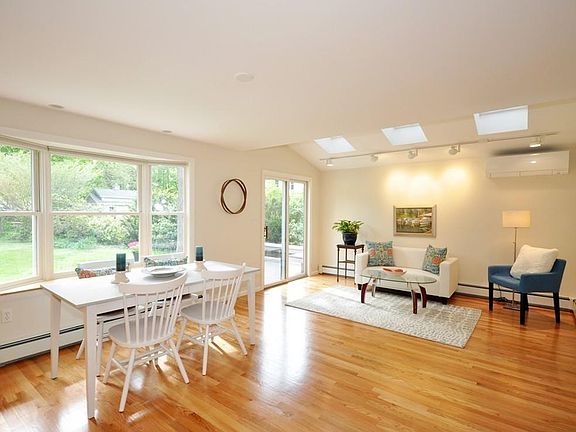 Sun, sun, sun, here we come! Concord Center! The home you've been waiting for at the location that is rarely available. The kitchen, dining, family gathering, and play areas are all together in one generous grand open room. Unique and perfect! Family sitting area has overhead lights, skylights, Cathedral ceiling and Sliders to the deck and the expansive level back yard with mature and thoughtful plantings. Nearby is the dining area with a bay window overlooking the genteel back yard. Cooking and entertaining is a breeze both inside and al fresco and expect cookouts every weekend. Open concept kitchen with several honey colored cabinets and super-sized butcher block island for preparation and gathering. Formal living room with fireplace, picture window, and bonus area for puzzles, and projects. Bona fide spacious laundry room and one car attached garage for an easy shopping experience. 4 separate and uber clean basement rooms for a multitude of projects. A must see this weekend!