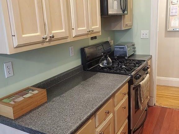 Beautiful, bright and sunny one bed condo in the heart of Allston Village with excellent flow. This space was formally owner occupied and has some nice updates and features. The fully applianced eat in kitchen features stainless steel microwave, fridge and dishwasher. There is a large common area that opens into a lovely porch for dining. There is ample closet space, large bedroom and modern bath. Heat, hot water included.