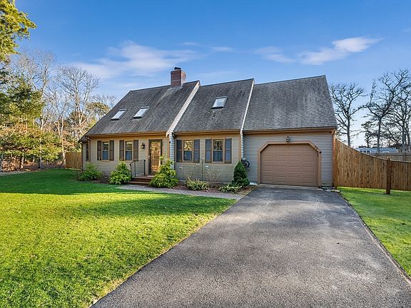 Cape style home, offering the perfect blend of privacy and convenience. Nestled just minutes from the Mid-Cape Highway, pristine beaches, vibrant shopping centers, and delectable restaurants, this delightful haven caters to both relaxation and exploration. Step inside to discover a comfortable layout featuring three bedrooms and two full bathrooms. An attached one-car garage provides convenient storage for your vehicle, while a spacious screened-in porch measuring 16x16 feet extends your living space outdoors. Imagine balmy summer evenings spent relaxing on the porch, surrounded by the serenity of your expansive backyard, complete with a privacy fence for added seclusion. Gleaming newer windows bathe the interior in natural light, while the recently updated kitchen and roof offer peace of mind and a fresh aesthetic. Updated flooring completes the picture, creating a move-in-ready haven perfect for creating lasting memories!