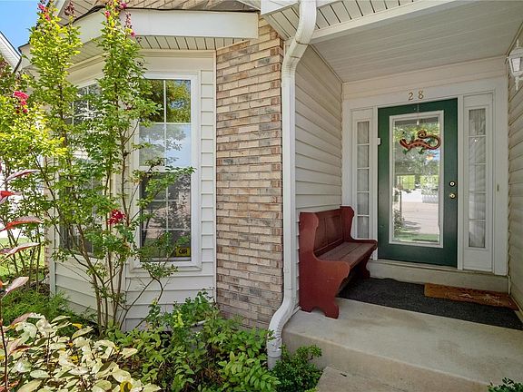 Convenient, carefree living awaits at 28 Rainier Pointe Ct. Great cul-de-sac location backs to common ground. Spacious entry foyer opens to the vaulted great room w/built-ins & gas fireplace. Adjoining dining area has huge bay window & slider to 11x10 sun room w/ceiling fan & access to the 11x11 deck w/stairs. Fully equipped kitchen w/hardwood floor is open to dining area, has island w/seating for 2 & lighted pantry. Lg owner's suite is vaulted w/bay window & ceiling fan, private full bath w/whirlpool tub & separate shower, topped off w/10x6 walk-in closet! 2nd BR (or office w/a view!) off entry has a bay window, overlooks the cul-de-sac, & full BA right outside the door. You'll find additional living space in the mostly finished lower level hosting family rm w/wet bar rough-in, den/office/media bonus room, PLUS spacious bedroom & full bath. Plenty of storage in the unfinished portion keeps everything tucked away! Seller offering home warranty for added peace of mind.