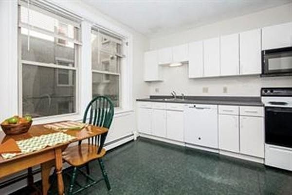 Spacious and sunny 1 bedroom plus office/den. Upon entering the unit, you will find a foyer with storage, a large living room with 3 windows for natural light, two bedrooms or bedroom and office on opposite sides of the living room, a large eat-in kitchen with dishwasher, built in microwave and plenty of cabinet space. Condo features high ceilings, hardwood floors throughout, and ample closet space. Easy access to the laundry downstairs. Great location on a one-way, treelined street off Comm Ave and Washington St. Only .2 miles to the Green Line (B) and the bus.